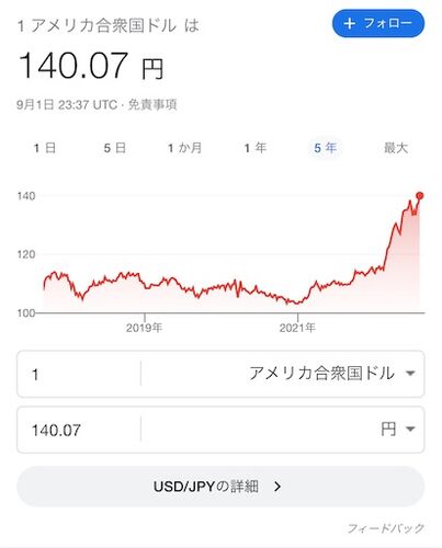 ドル高進行中 気付けば、9月になり今年も残り3ヶ月になりました。昨日の大きなニュースとしては、為替相場です。何と1ドル140円となりました。 実に24年ぶりとの事です。確か今年の3月頃が120円台だったので、この数ヶ月で日本円換算の給与が約17%上がった事…